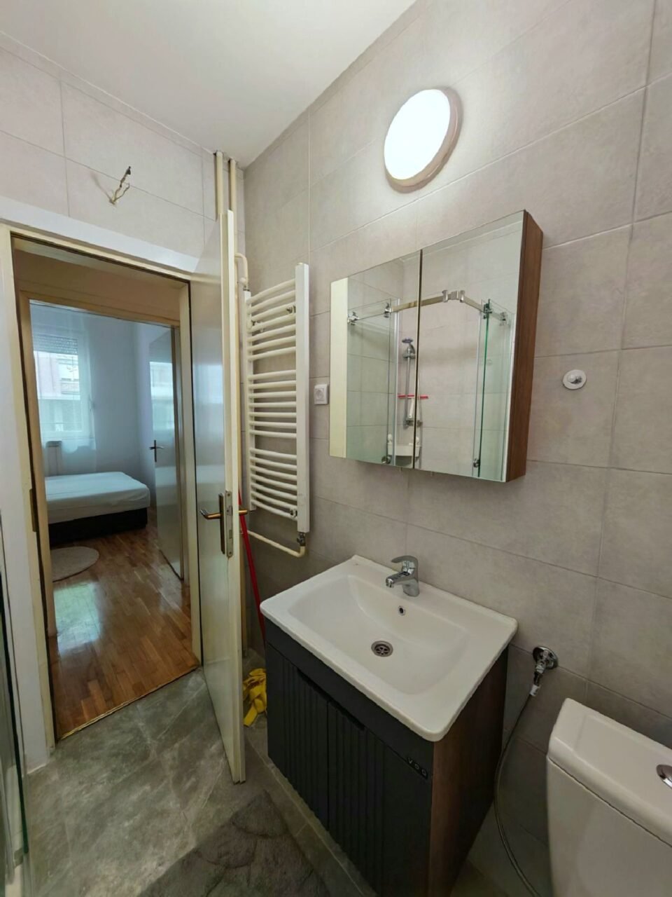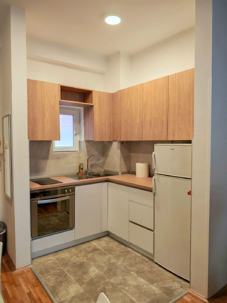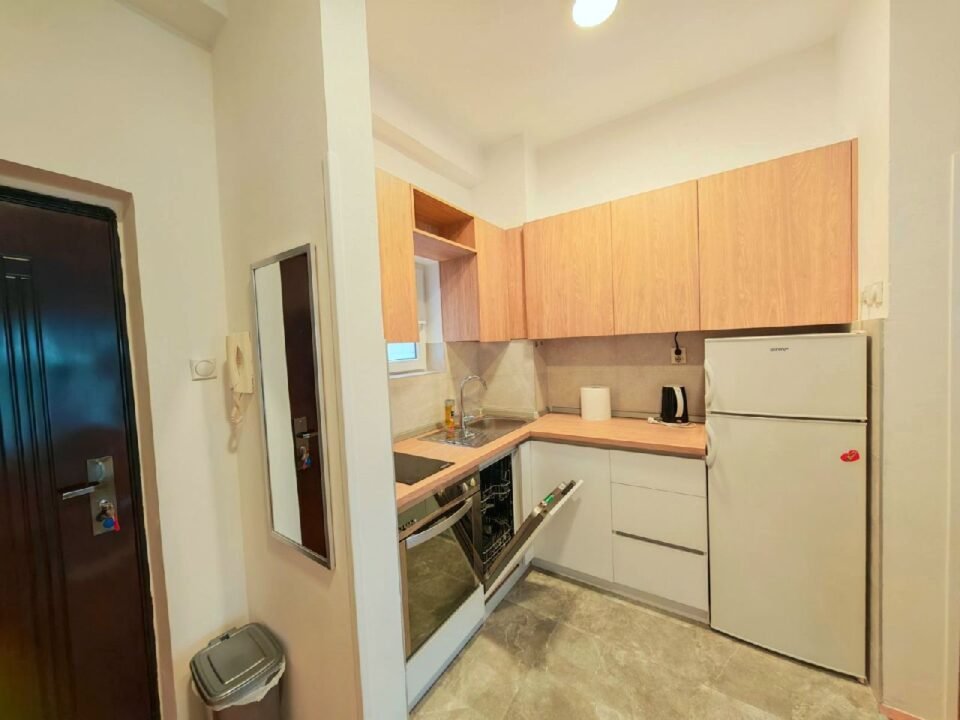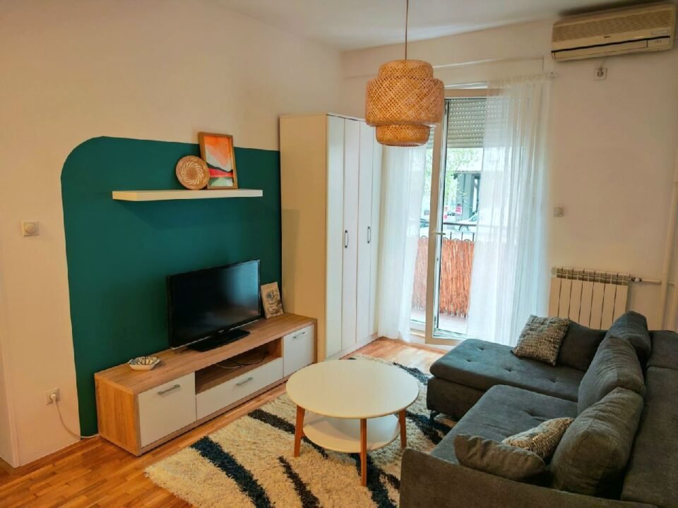 Stan je u potpunosti renoviran i opremljen nameštajem i savremenom belom tehnikom, uključujući mašinu za sudove, mašinu za veš, šporet, frižider, klimu i TV.