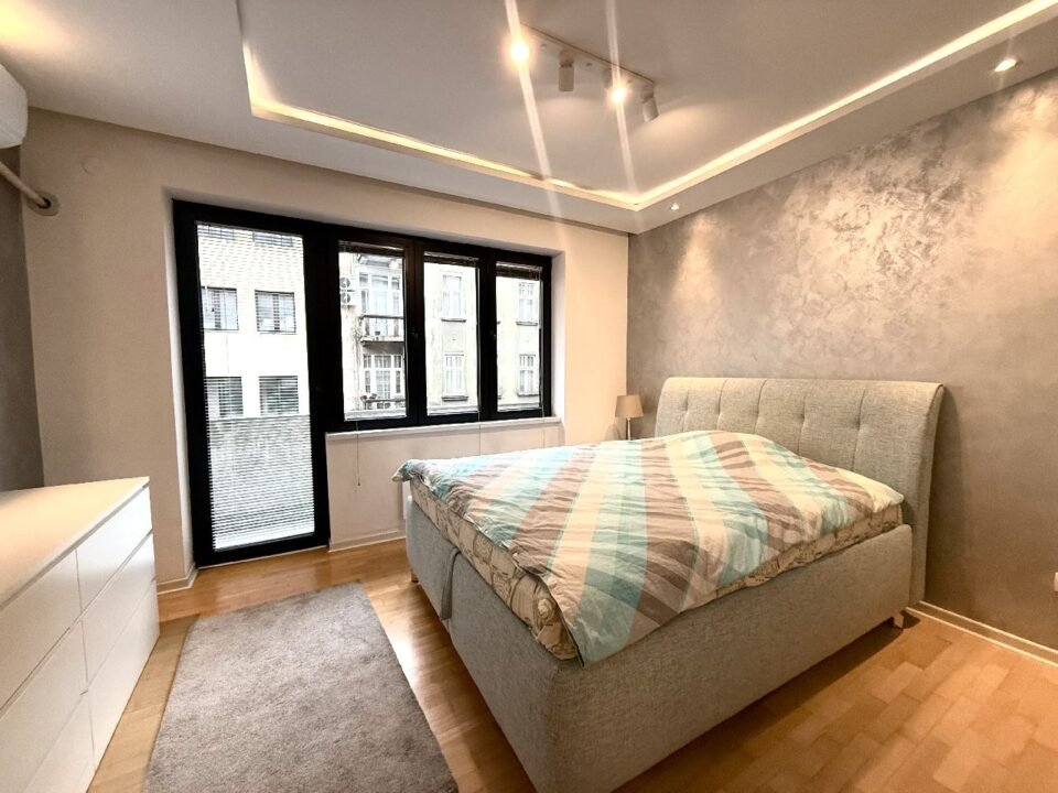 Potpuno je renoviran, dizajnerski uređen sa nameštajem rađenim po meri i idealnim rasporedom prostorija. Stan je svetao, ušuškan i poseduje dosta prostora za odlaganje.