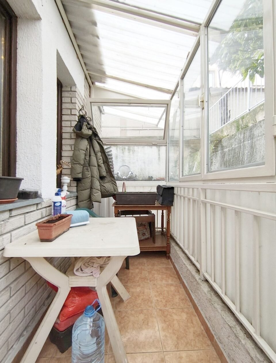Prostorije: prostrani dnevni boravak sa kuhinjom i trpezarijom, odvojena spavaća soba, kupatilo i zastakljena terasa, na koju se ulazi iz prolaza oko zgrade.