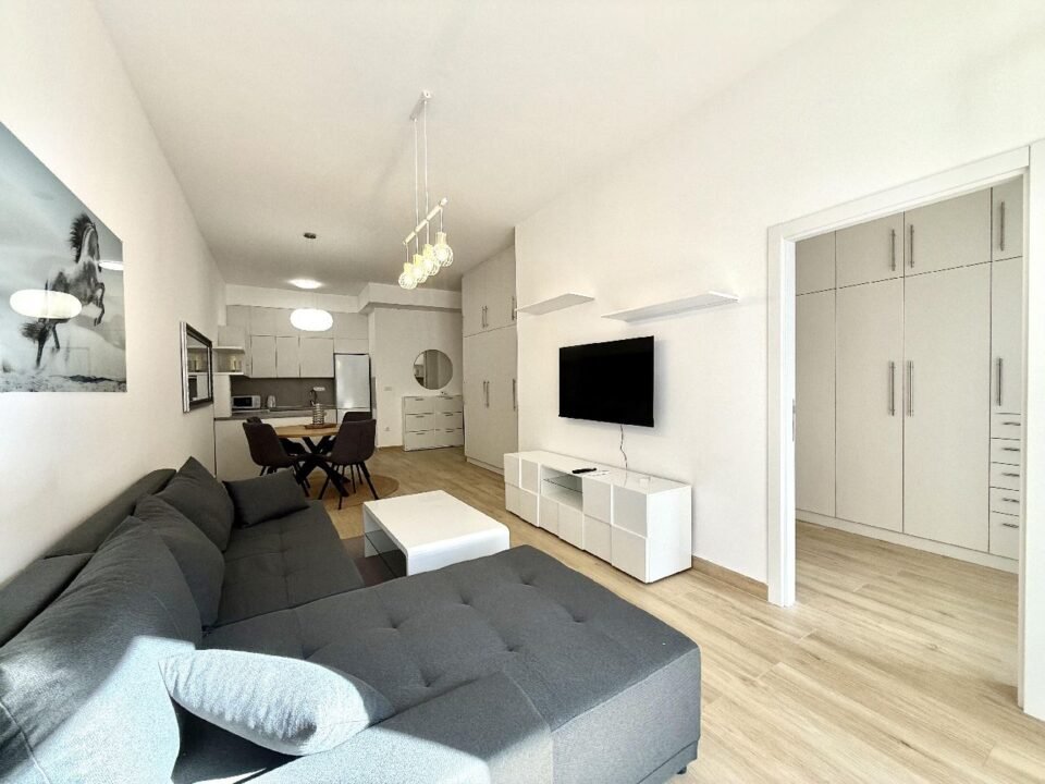The apartment is fully equipped with brand-new furniture and top-quality appliances.