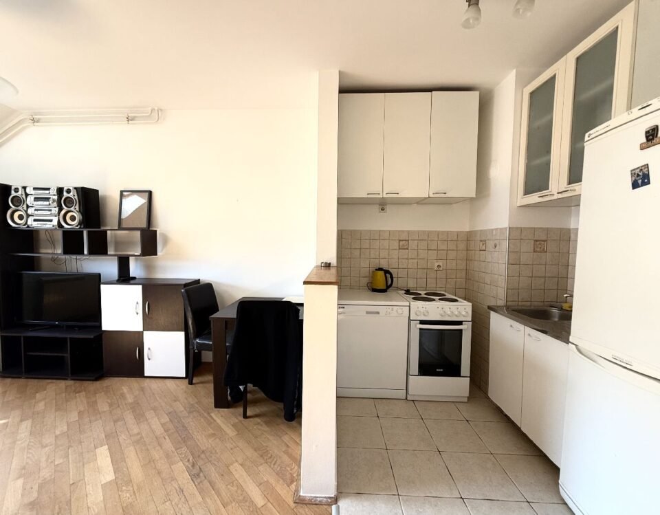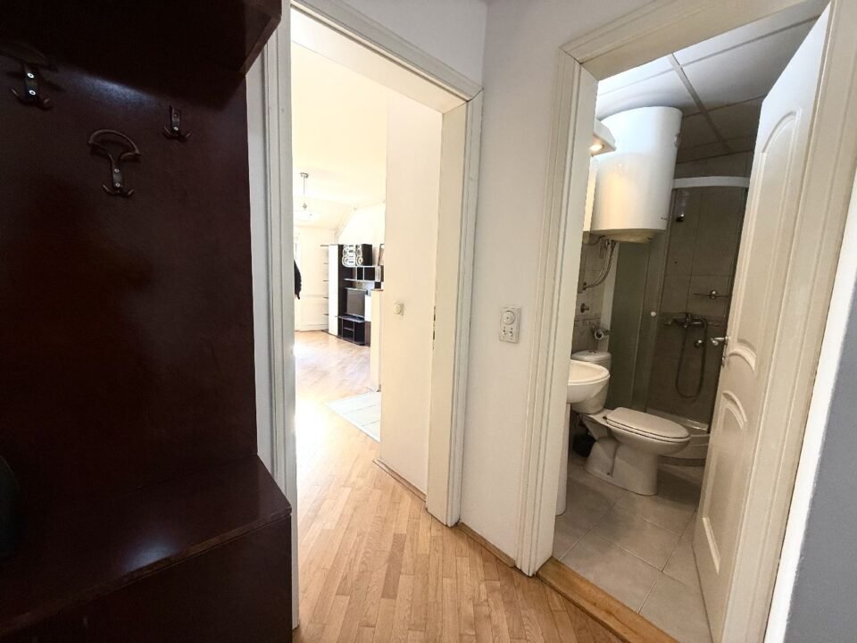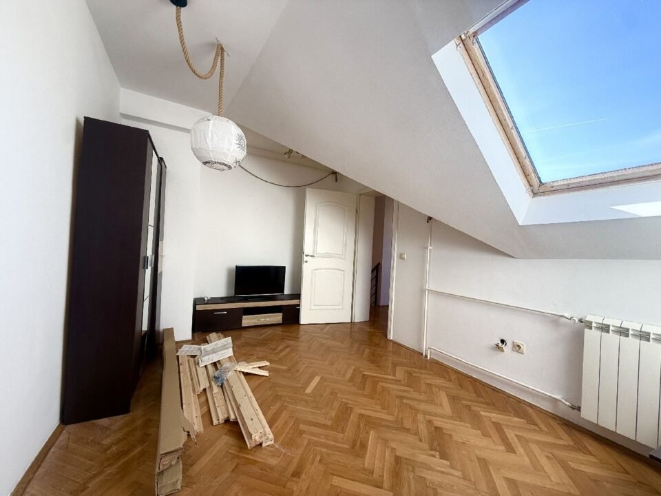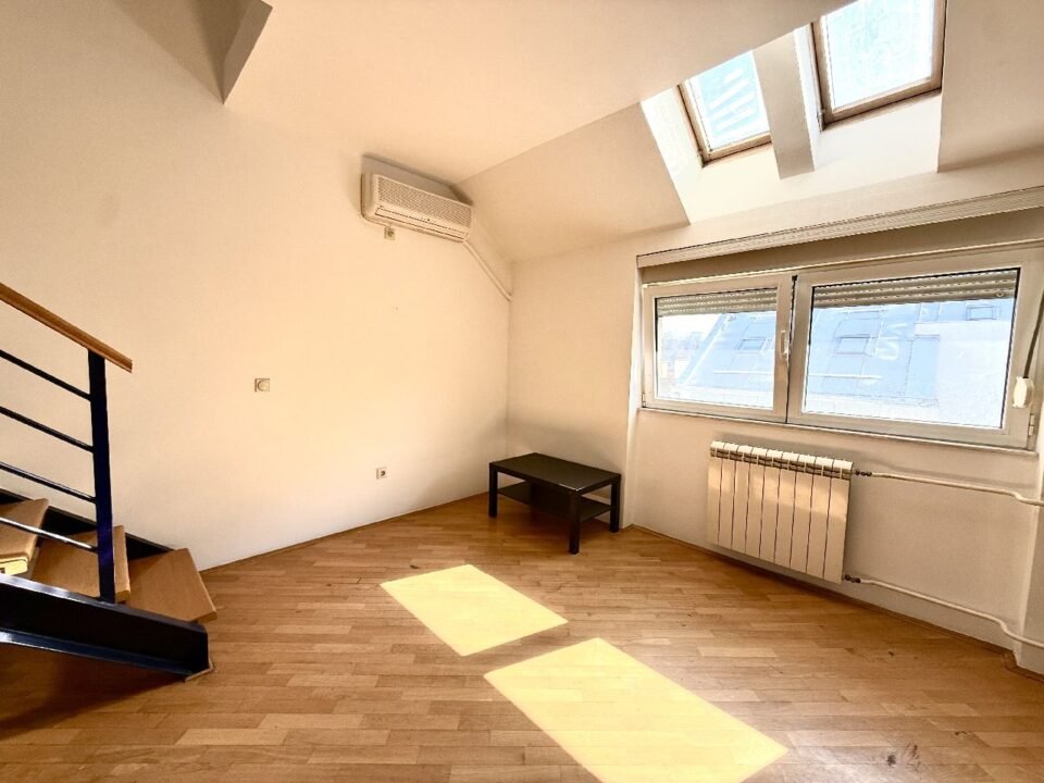 The apartment has 84m2 and a terrace of 5m2 that overlooks Roosevelt Street and further towards the city center. It is spread over two levels, on the lower level there is a hallway, a bedroom with a terrace, a pantry equipped with shelves, a kitchen and a living room. On the upper level there are two bedrooms and a bathroom. Each room has its own double bed, TV chest of drawers, LCD TV… The kitchen is fully equipped with appliances, the apartment has two air conditioners, as well as a washing machine. In the vicinity of the apartment there are Super Vero, Hotel Zira, Vuk’s monument, Parliament, Terazije, Knez Mihajlova, the city hospital and many other businesses. The apartment is also ideal for office space. House pets are also welcome, with the owner’s obligation to take good care of the furniture and other inventory. Total monthly costs are RSD 16,000 + electricity per consumption. Parking within the zone around the building.