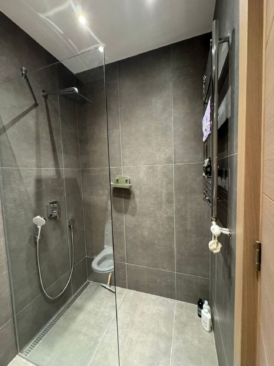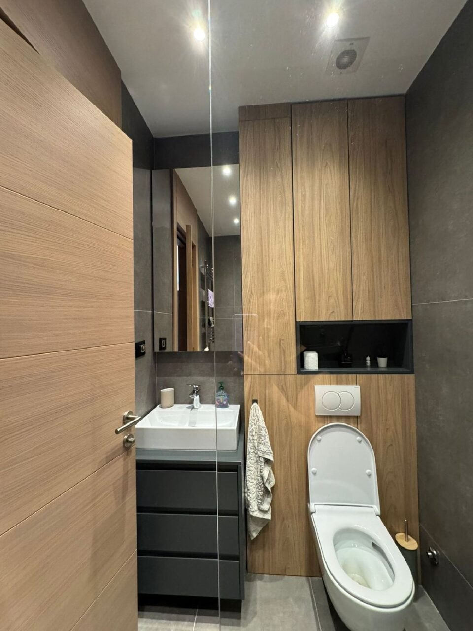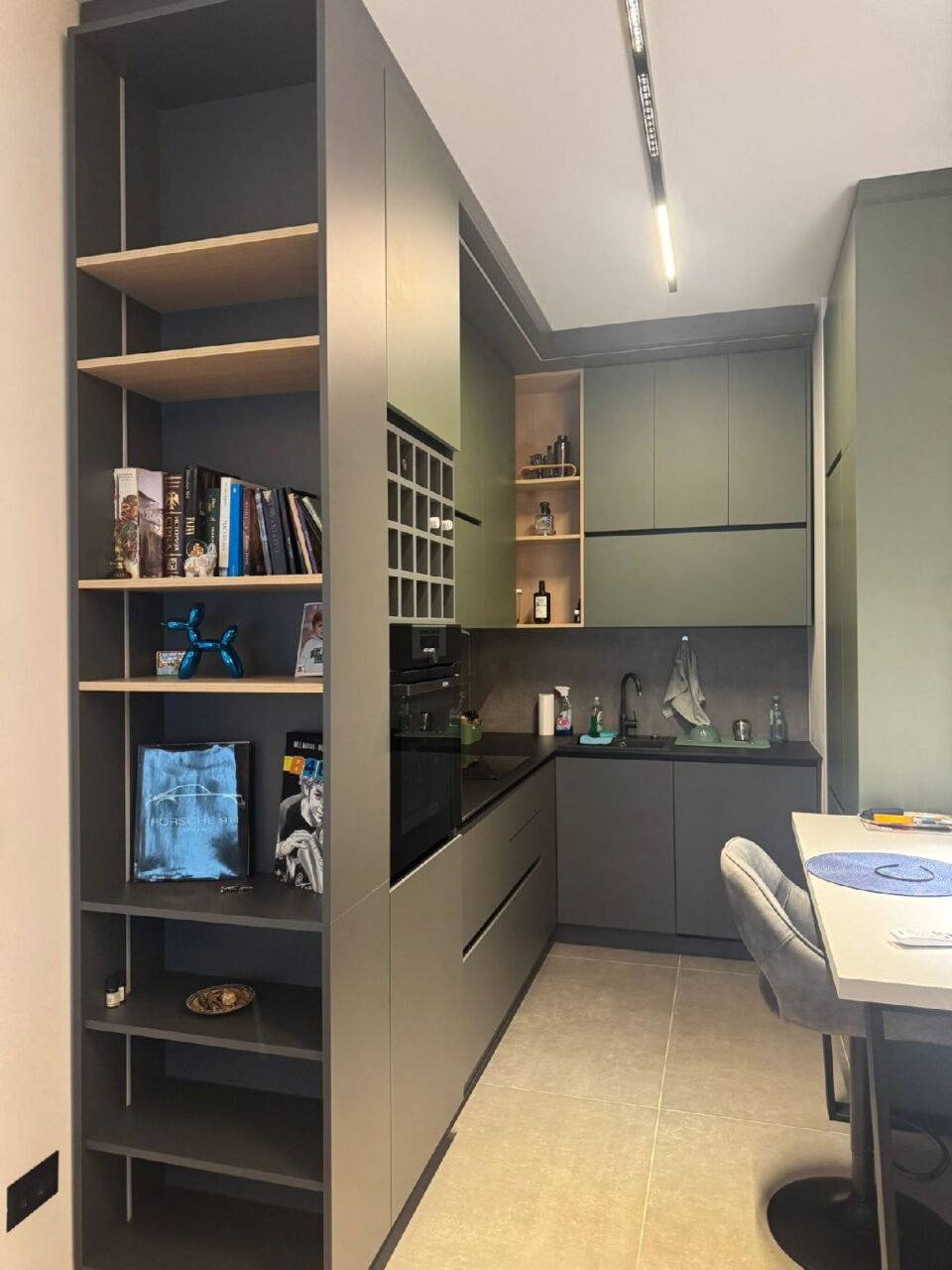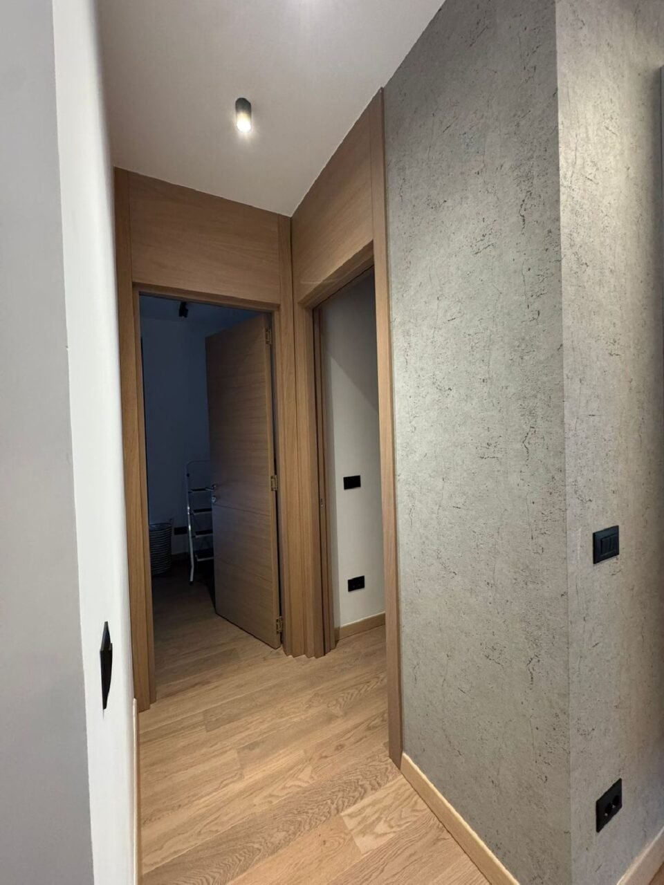 Nalazi u prizemlju potpuno nove i odlično održavane četvorospratne zgrade sa liftom i malim brojem stanova. Ono što ga čini posebnim je činjenica da je sa svih strana okružen terasom (dvorištem) od 80m², koja pripada samo ovom stanu, i koja mu pruža privatnost zahvaljujući zidu koji ga sakriva od pogleda, a na koju se može ući i spolja, a ne samo kroz stan. Stan je u perfektnom stanju, opremljen vrhunskim, luksuznim, najkvalitetnijim nameštajem rađenim po meri, Haier uređajima, troslojnom stolarijom i drugom opremom.