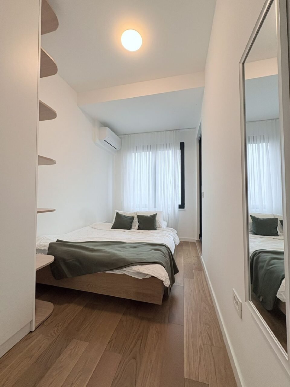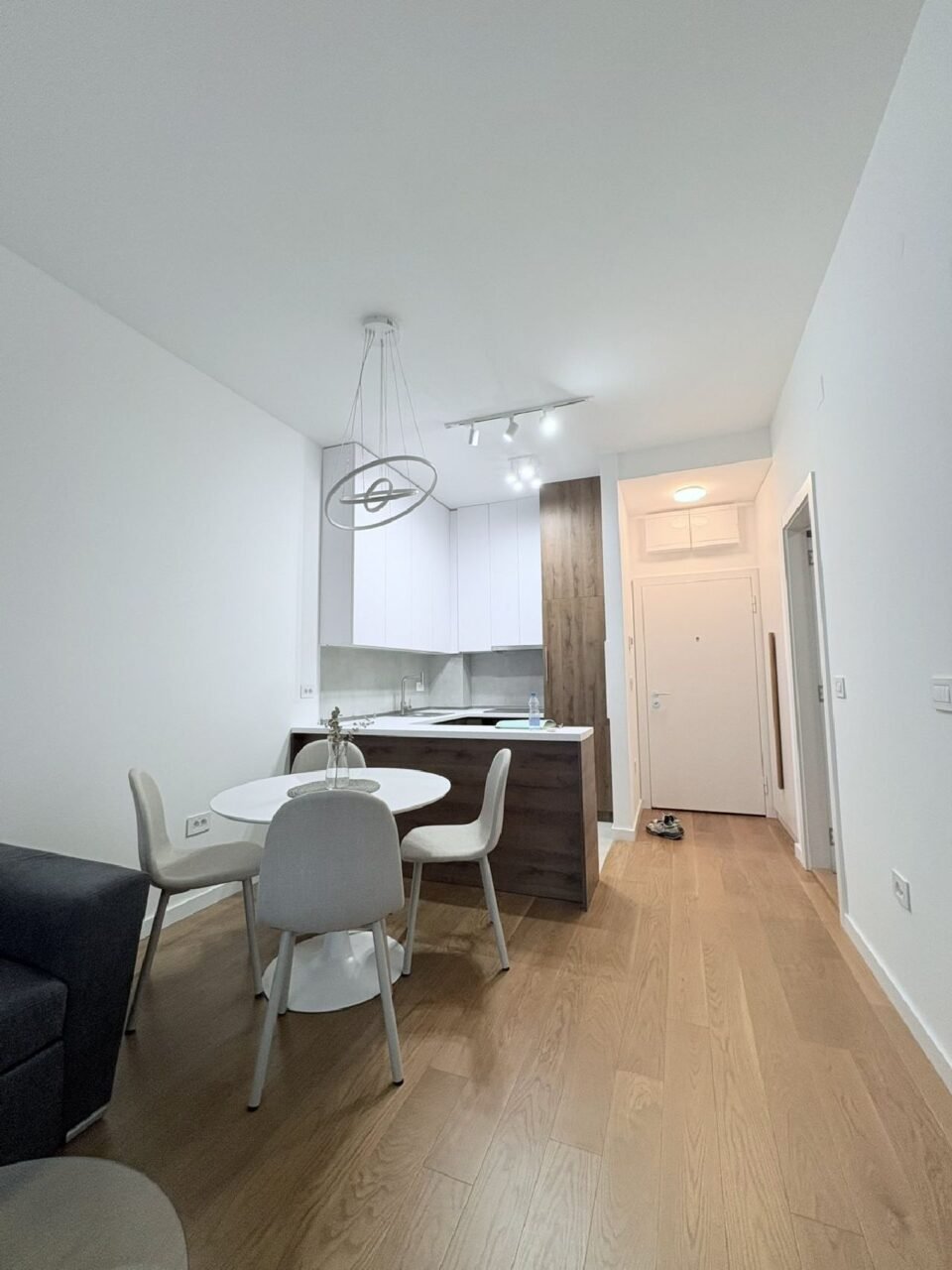Opremljen je luksuznim nameštajem i belom tehnikom, protivpožarnim blindiranim vratima i pametnom rasvetom.
