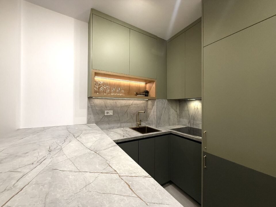 The apartment has never been lived in, and everything is new and luxuriously equipped.