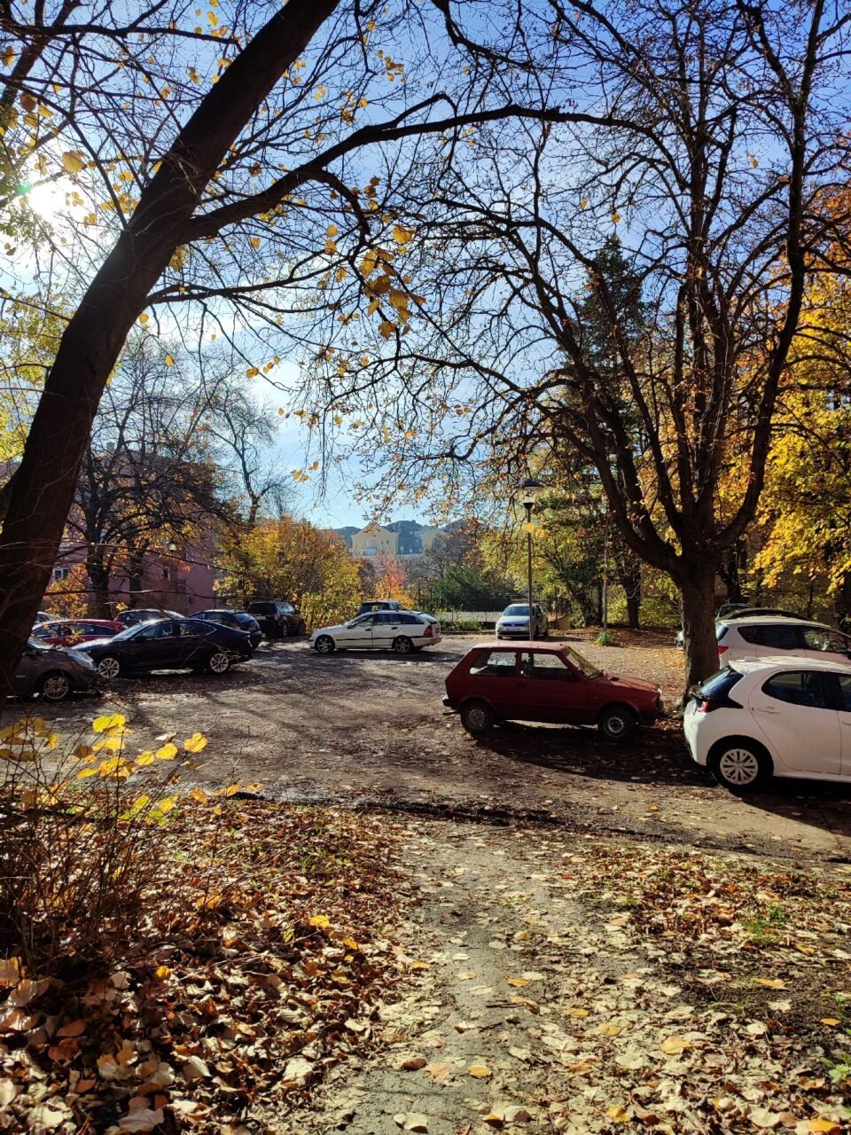 Ispred same zgrade je veliki parking sa uvek i dosta slobodnih mesta za parkiranje.