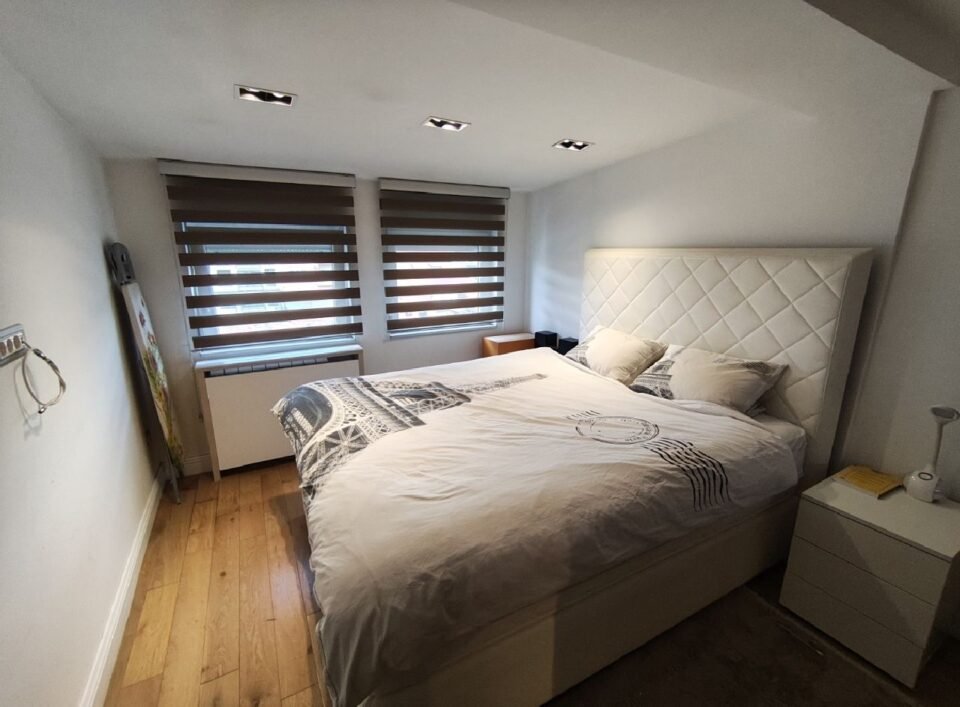 Prostorije: veliki dnevni boravak (iz kojeg se izlazi na terasu) sa trpezarijom i odvojenom kuhinjom, dve spavaće sobe (od kojih je jedna sa garderoberom, nastala tako što su spojene dve sobe, što po potrebi može da se vrati u prvobitno stanje), kupatilo i terasa.