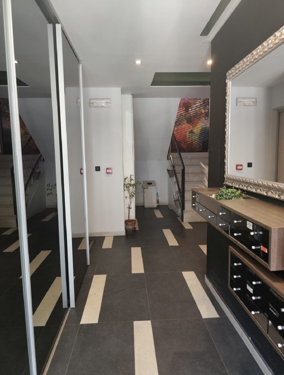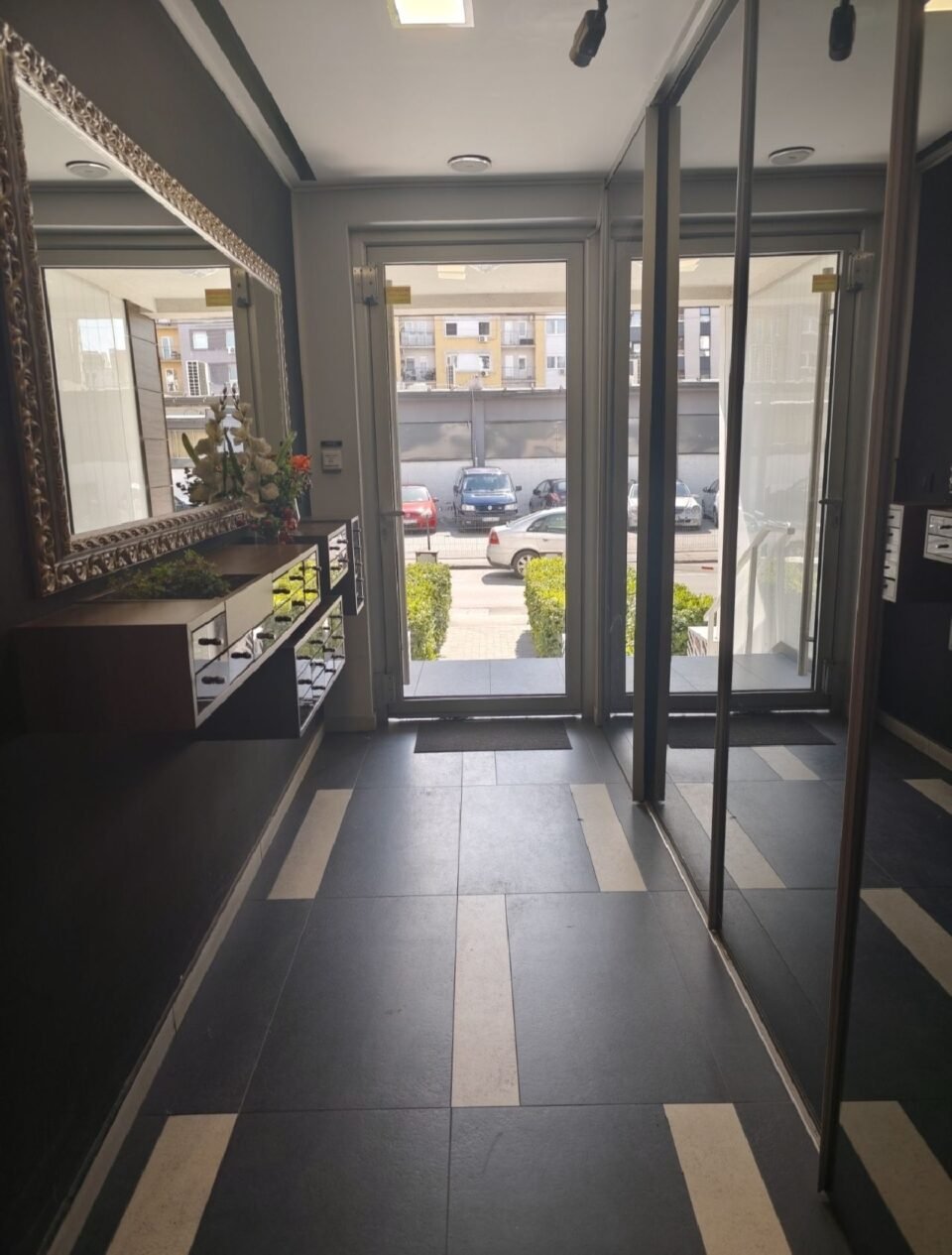 Nalazi se na petom, ujedno poslednjem spratu uredne i odlično održavane zgrade novijeg datuma, sa liftom i ne velikim brojem stanova.